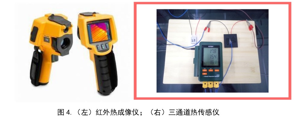 图 5.测试设备(上);相同发热元件的温度曲线对比,其中环境温度均为 20℃(下)
