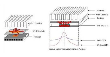 散热膜具有较大的散热有效表面积,在这个表面上热力被转移并由外界冷却媒介带走。石墨散热片通过将热量均匀的分布在二维平面从而有效的将热量转移,保证组件在所承受的温度下工作。